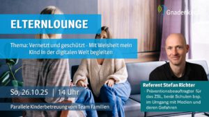 Sonntag, 26.10.: Elternlounge mit Stefan Richter „Vernetzt und geschützt – Mit Weisheit mein Kind in der digitalen Welt begleiten“ um 14 Uhr sowie parallele Kinderbetreuung