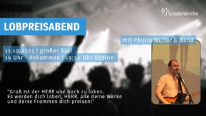 Samstag, 11.10.: Lobpreisabend 19.30 Uhr – sei willkommen und lasst uns zusammen unseren großen Gott loben und anbeten!