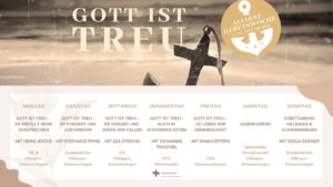 Sonntag, 18. Jan                               Allianzgebet Abschlussgottesdienst 19 Uhr